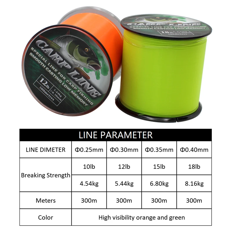 Línea de pesca de carpa de 300M, enlace de gancho de línea principal para aparejo de carpa, equipo de aparejos de pesca gruesa de carpa