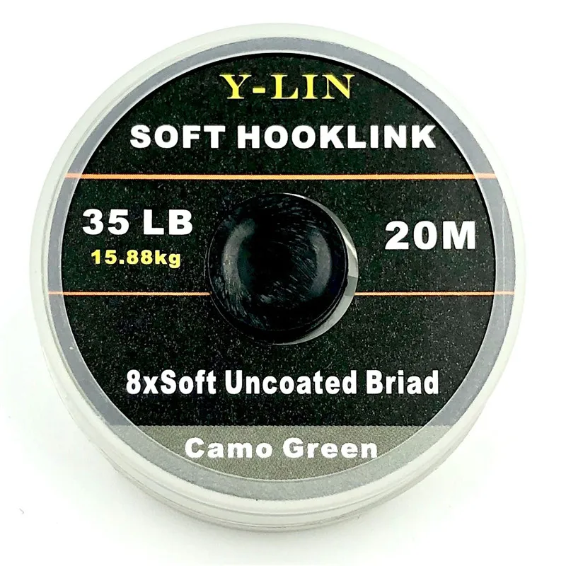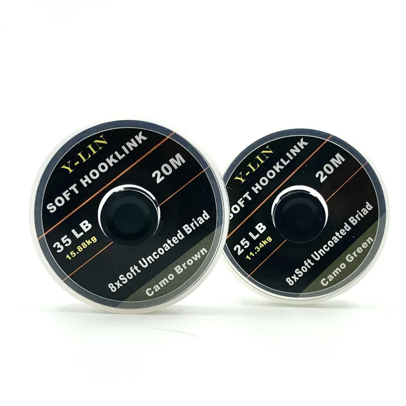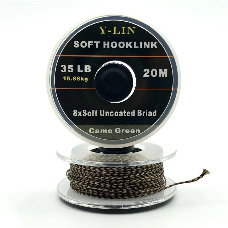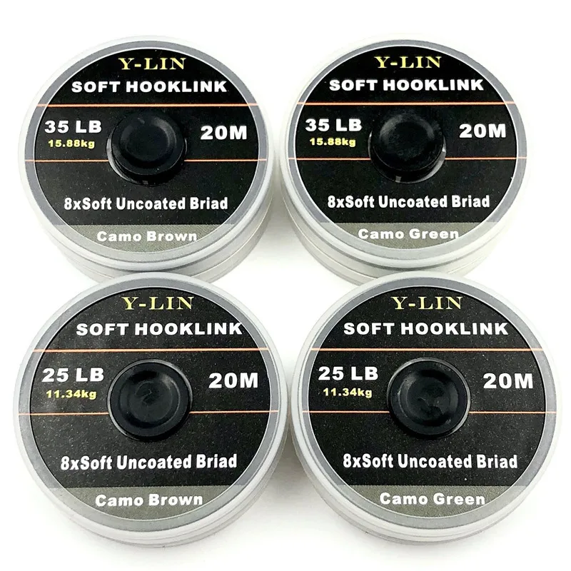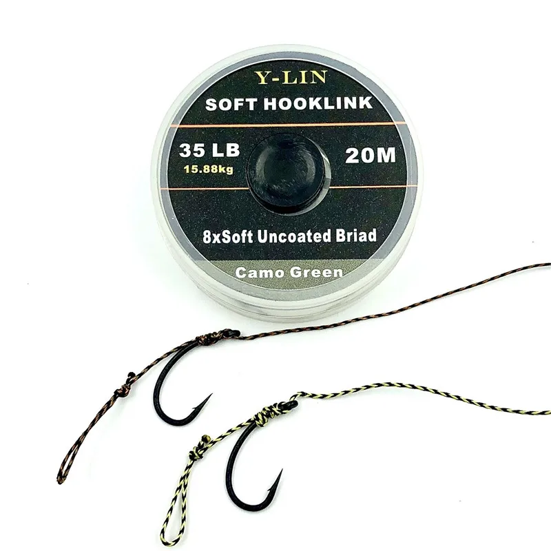 Línea de pesca de carpa de 20m, enlace de gancho suave, línea trenzada sin recubrimiento para aparejo de pelo 25IB 35IB, aparejos de pesca