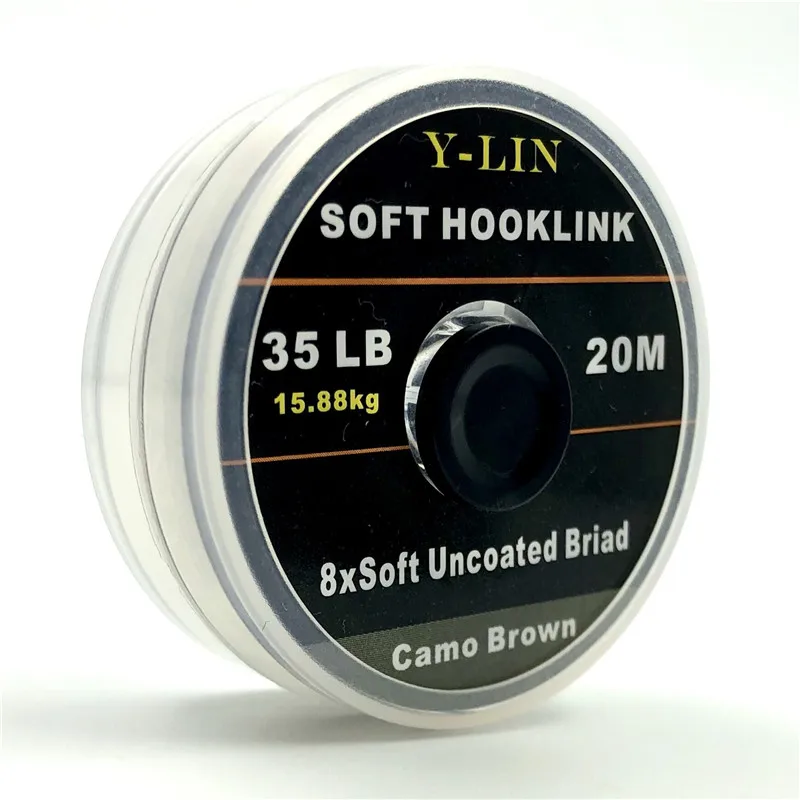 Línea de pesca de carpa de 20m, enlace de gancho suave, línea trenzada sin recubrimiento para aparejo de pelo 25IB 35IB, aparejos de pesca