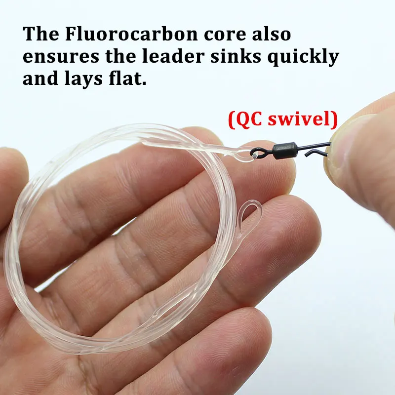 100CM Carp Fishing Line Fluorocarbon Carp Leaders with Fishing Tackle QC Quick Change Swivel Fused Loop Leaders Non LeadCore