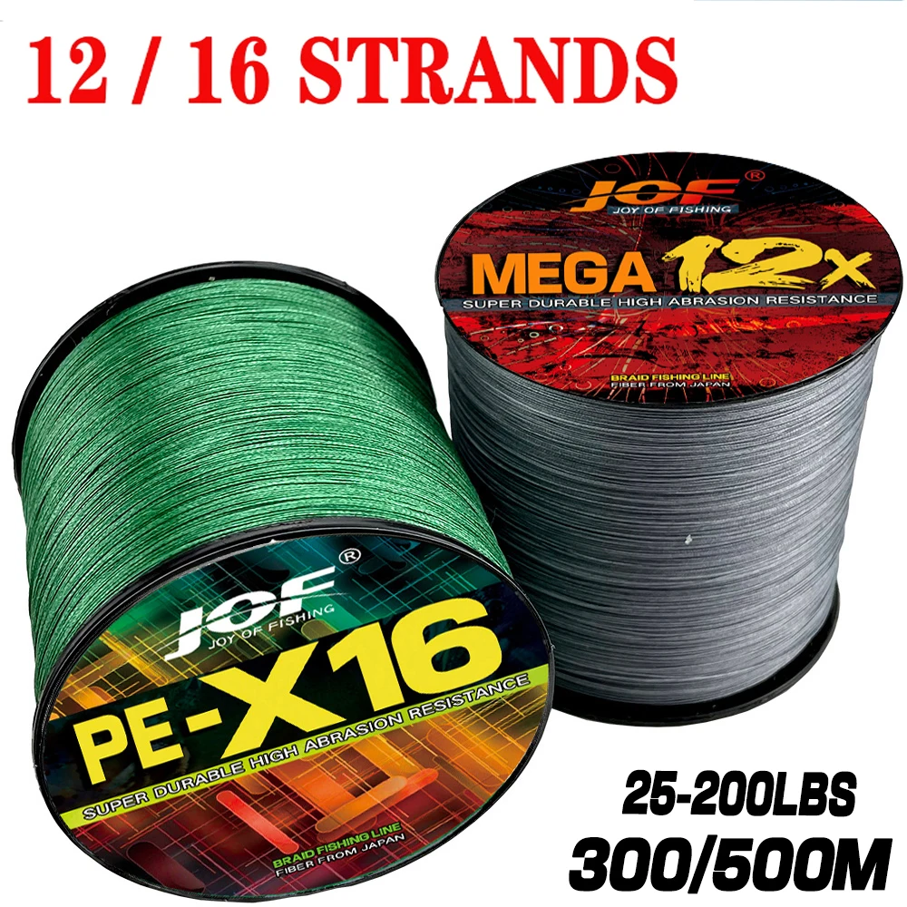 Línea de pesca de carpa JOF 300M 500M X12/16 hilos trenzados Japón multifilamento PE alambre súper fuerte duradero suave aparejos 11,3-91KG