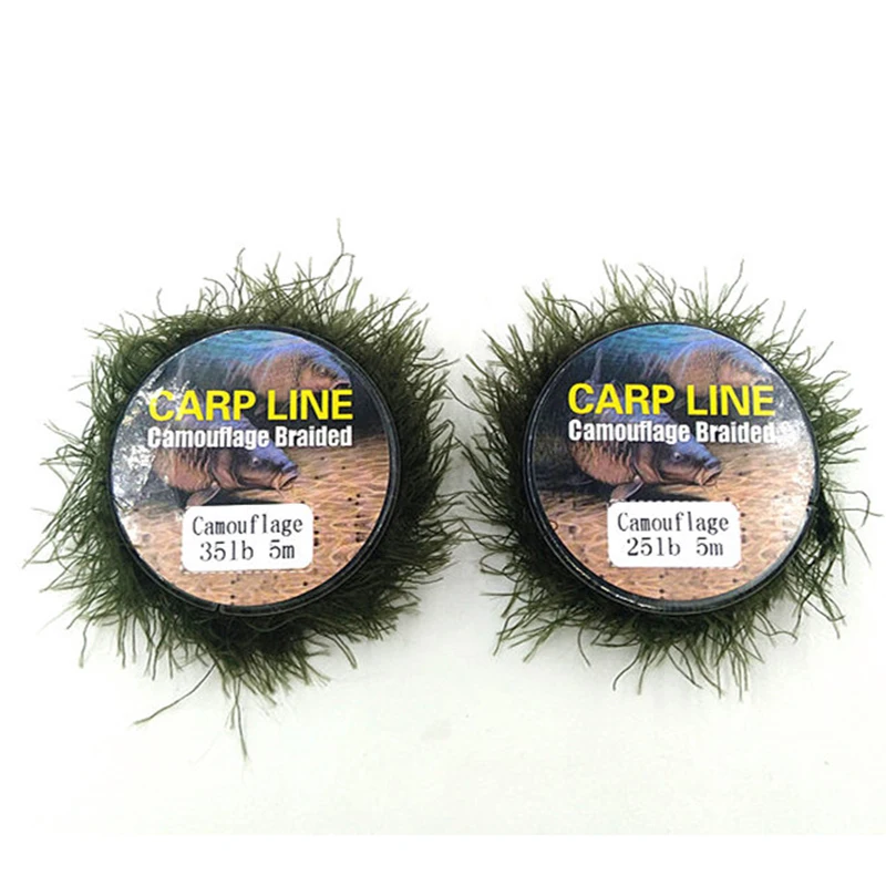 Método de línea de pesca de carpa de hierba realista de 5m, aparejos de pelo, accesorios de pesca de carpa, enlace de gancho suave trenzado para aparejos gruesos de carpa