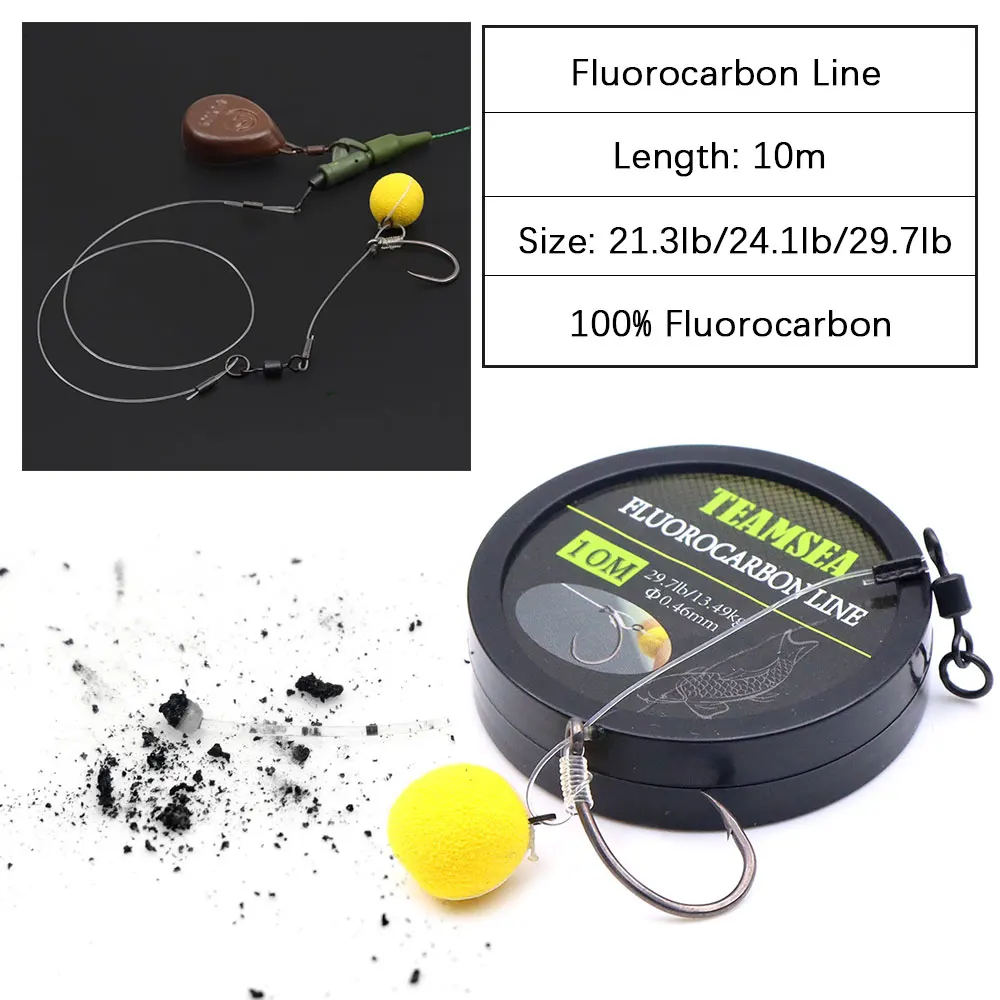 - Es un material de gancho de fluorocarbono engarzable y perfecto para crear secciones rígidas de pluma.