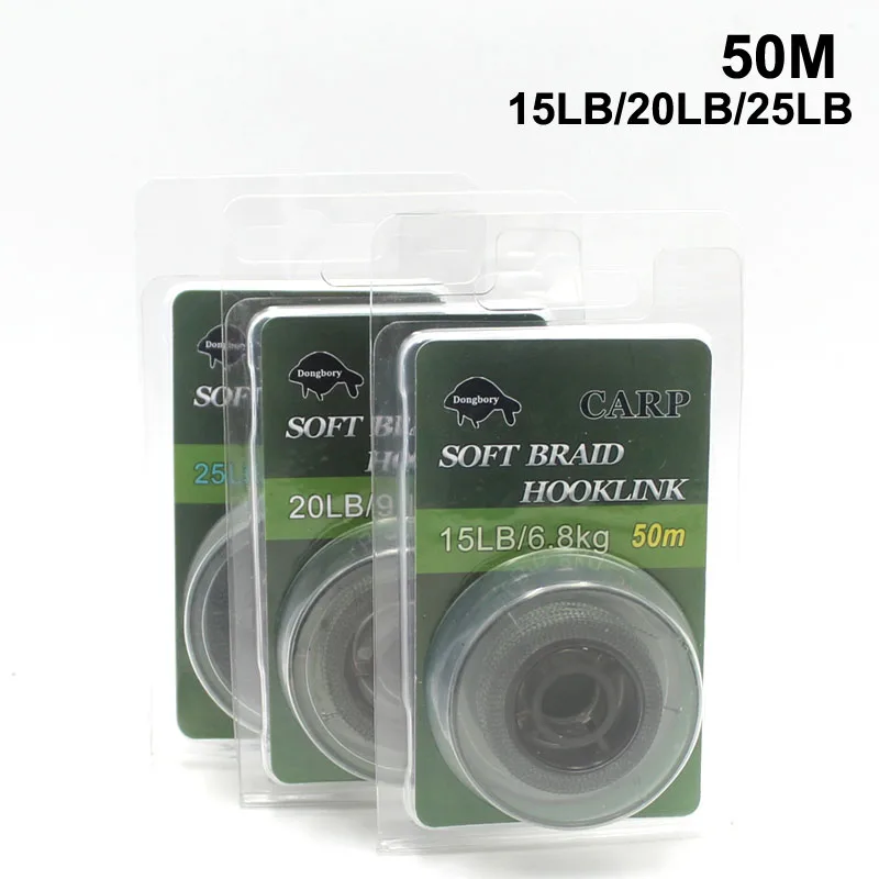 Línea de pesca de carpa Hooklink trenzada suave de 50m para aparejo de pelo Un Hooklink recubierto experto carpa alimentador grueso aparejos de pesca