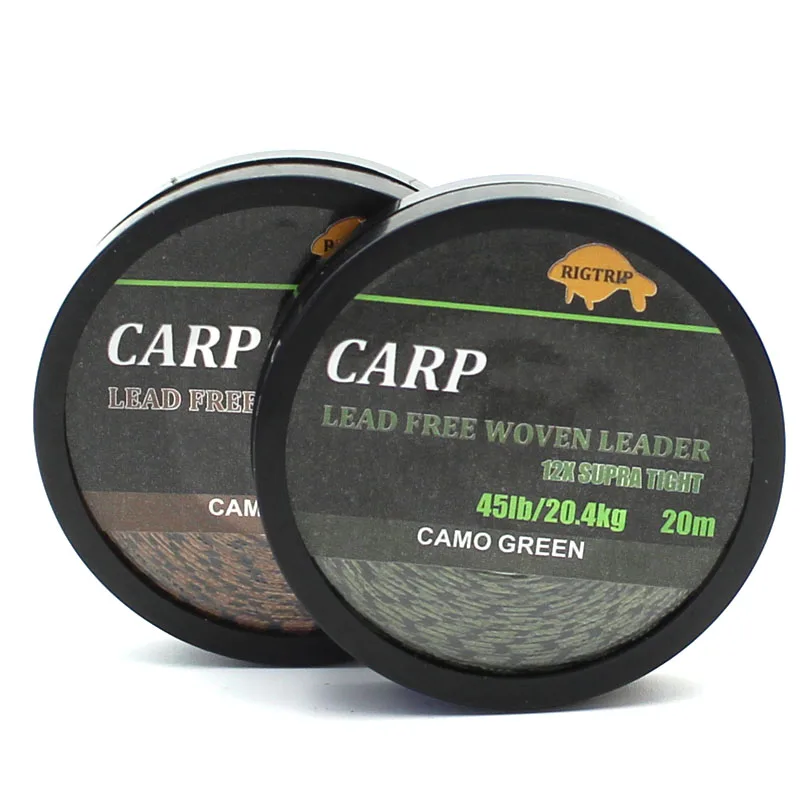 Línea de pesca de carpa verde de camuflaje de 20m, gancho de enlace de carpa, línea trenzada sin recubrimiento, líder para aparejo de pelo, línea de aparejo de 45LB