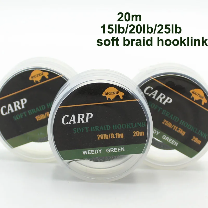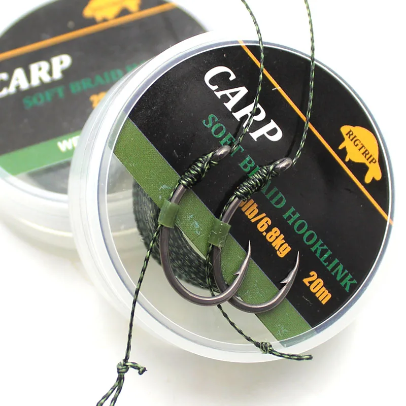 20m Camouflage Green Carp Fishing Line Soft Hook Link Carp Hooklink Uncoated Braid Line Leader for Hair Rig 25 15LB Rigging Line
