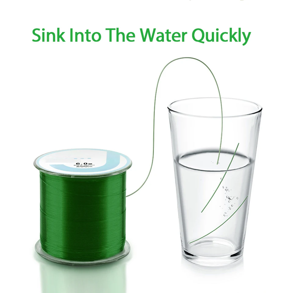 Línea de pesca DNDYUJU de 500M, línea de mosca verde, alambre de pesca monofilamento duradero, línea de pesca fuerte de nailon, diámetro de 0,1mm-0,47mm