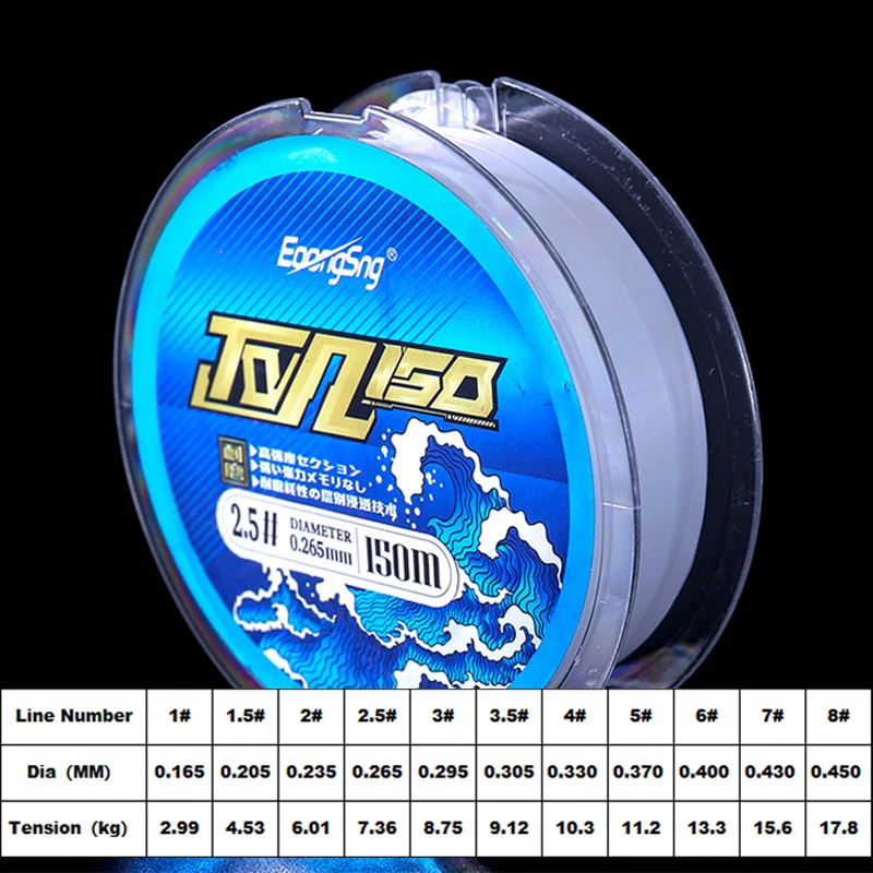 Línea de pesca en roca de 150m, línea especial de pesca semiaflante, 4 colores, monofilamento de alta calidad, señuelo de nailon, línea de pesca con caña de mar