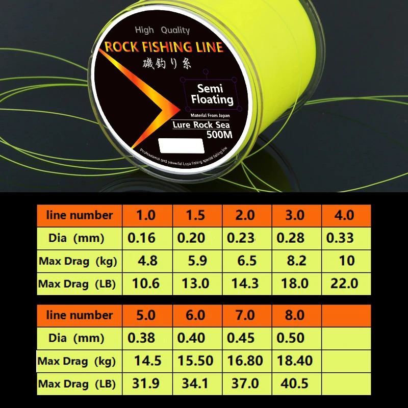 Línea de pesca en roca flotante de 500m, equipo de resistencia de línea de nailon resistente al desgaste de alta calidad para señuelo, pesca en el mar