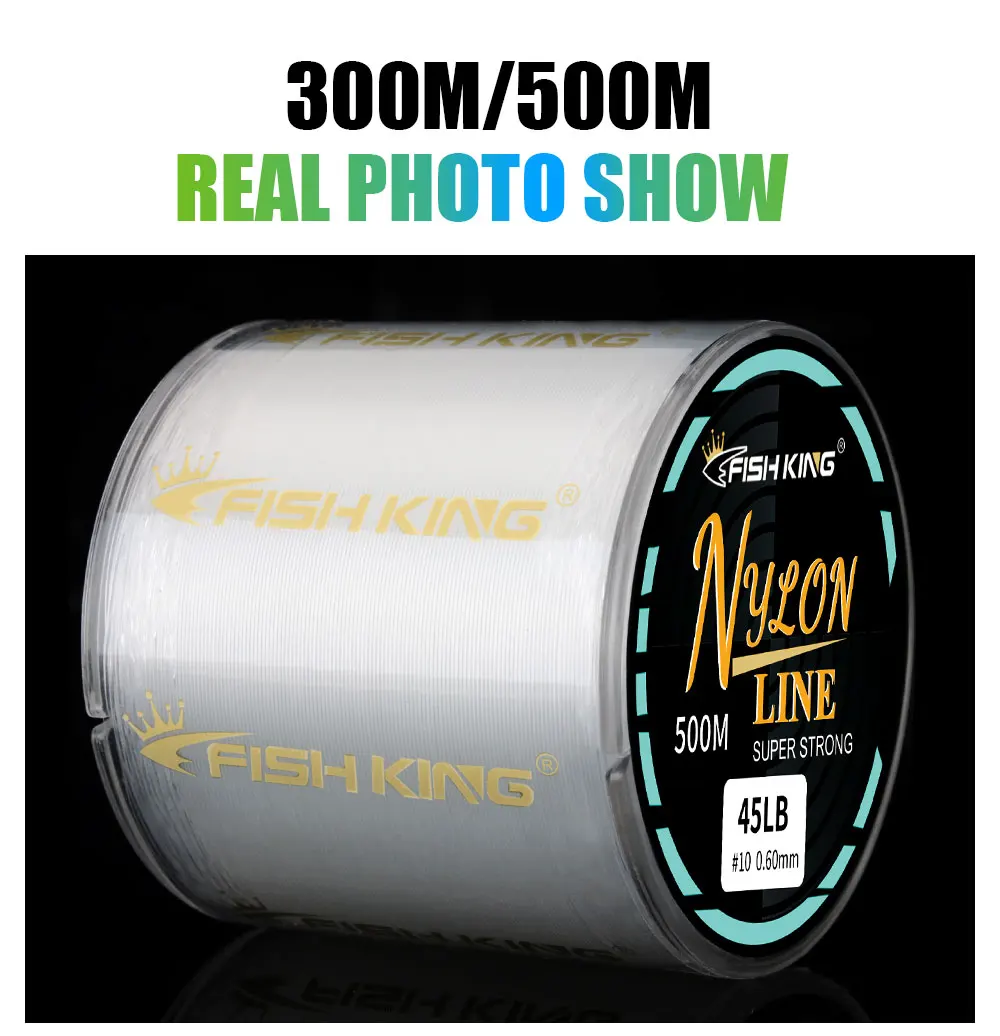 Línea de pesca FISH KING, línea de nailon súper fuerte, 300m/500m, línea de monofilamento de 4,13-34,32LB, Material japonés, línea de pesca para pesca de carpa
