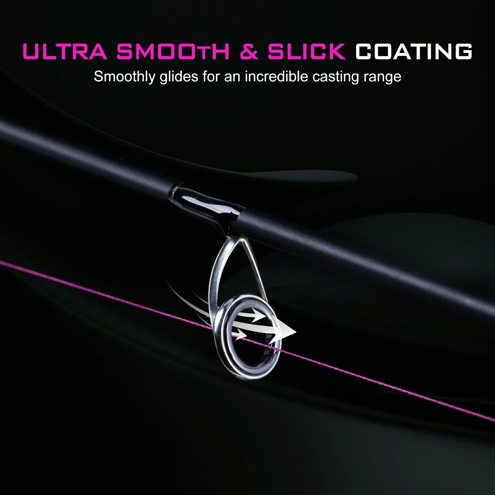 El diseño de revestimiento ultrasuave minimiza la resistencia de la línea a través de las guías, lo que hace que el lanzamiento sea más fácil y más largo.