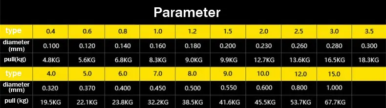 Material: fibra de polietileno de alta resistenciaLos parámetros