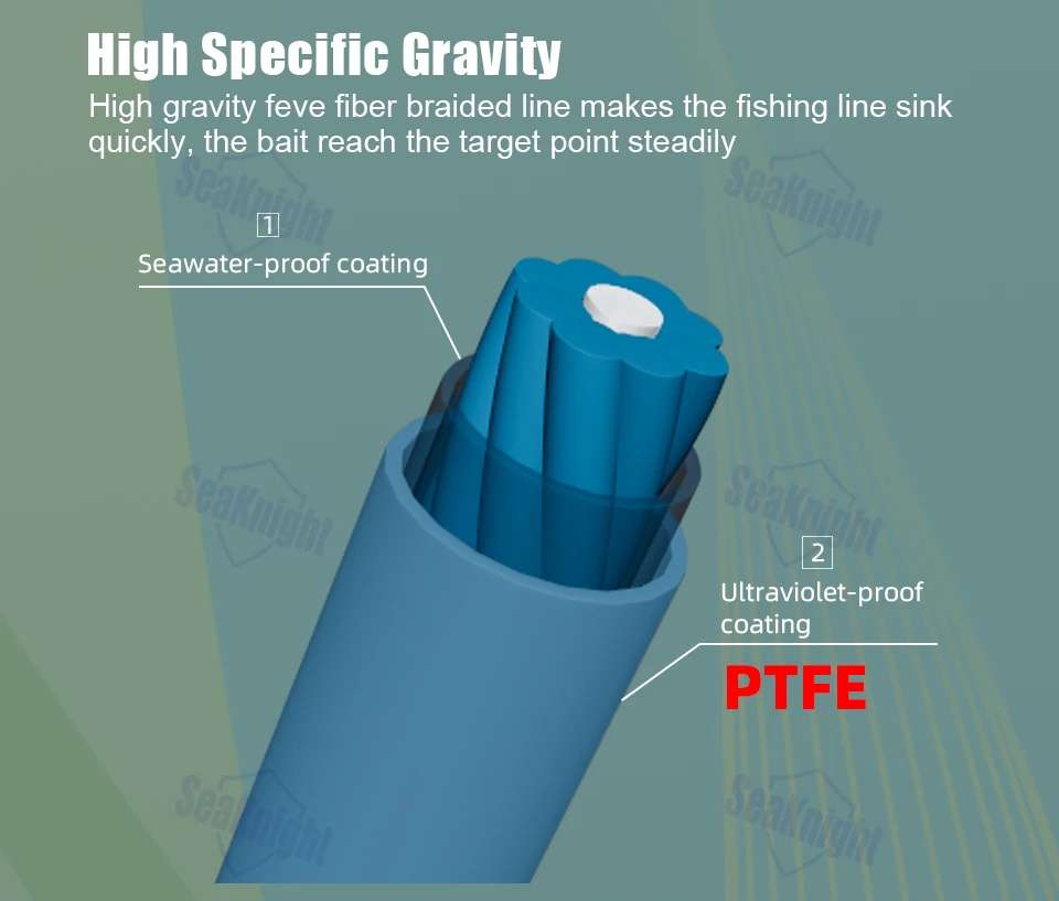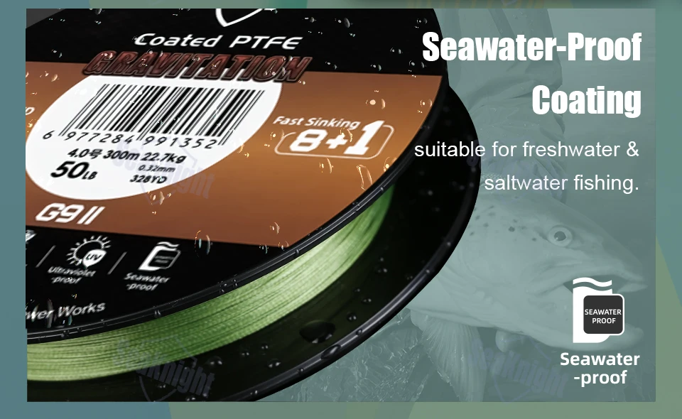 Línea de pesca hundida de marca SeaKnight G9 II, 300m/150m, revestimiento de PTFE, línea de pesca trenzada de Ultra densidad, resistente al agua de mar, a prueba de rayos UV