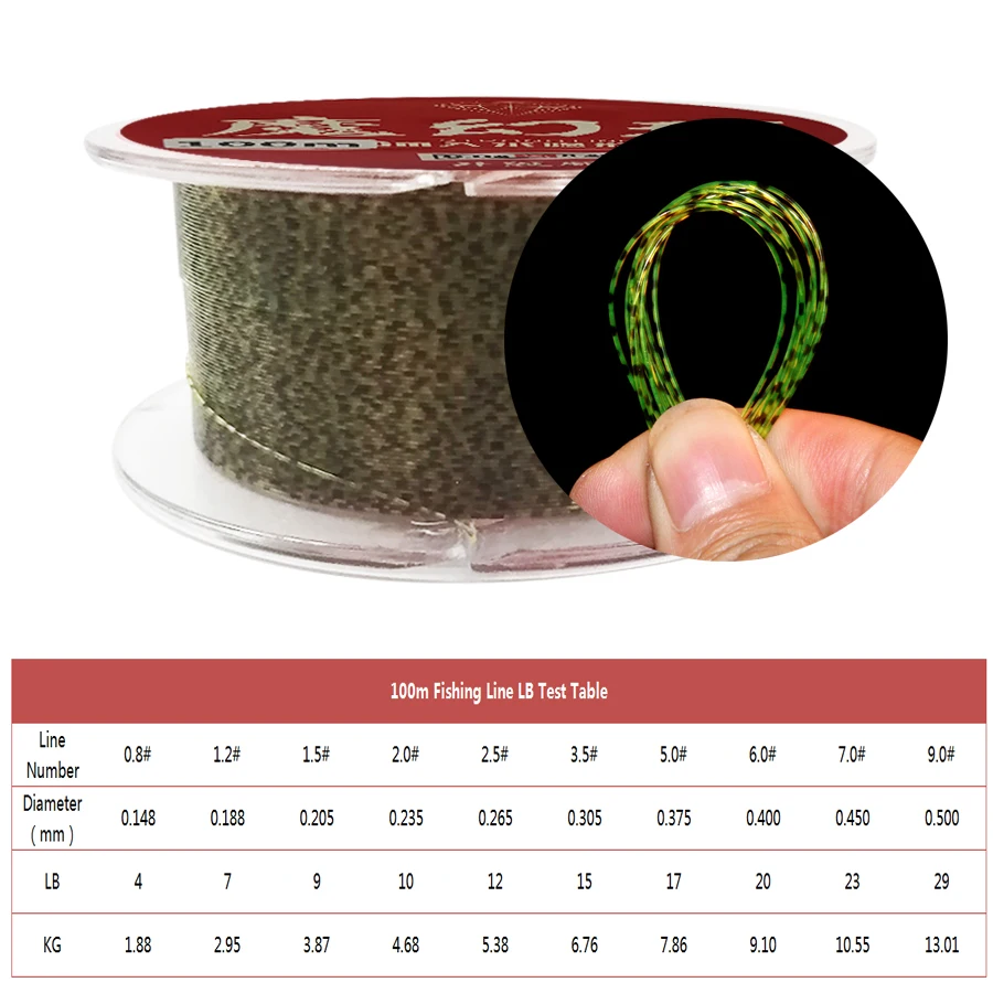 Línea de pesca de monofilamento manchada de 100m, líneas líderes de pesca de nailon, línea de peces Invisible transparente de 4 a 29 libras
