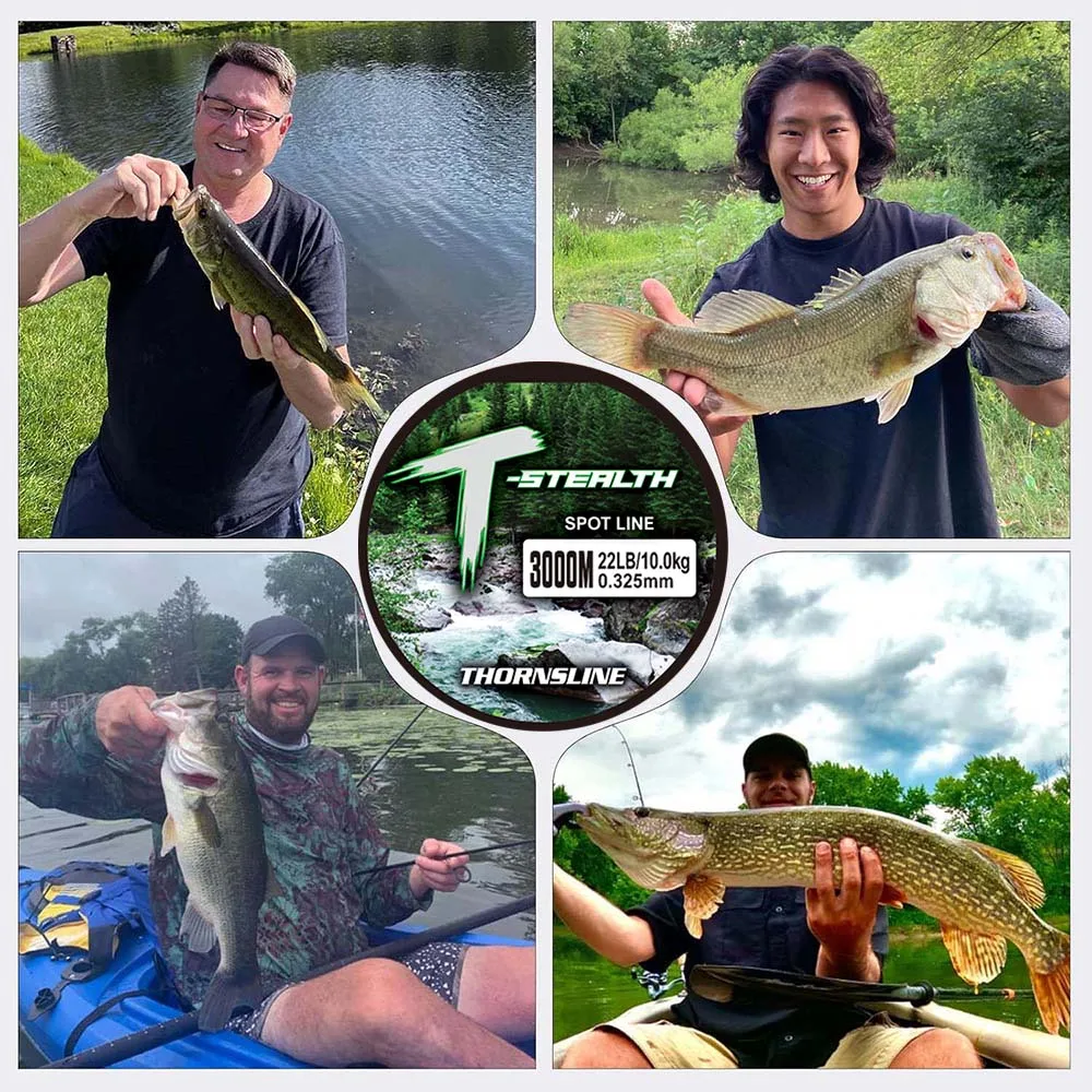 Manchas de camuflaje biónicas para facilitar la pesca.El color del hilo de pescar varía según el entorno, que es verde en fondo oscuro y marrón en fondo brillante.