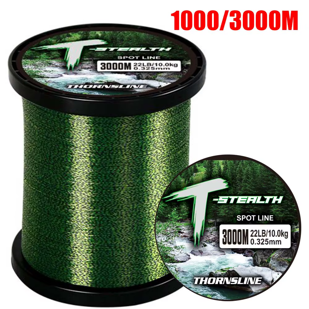 【Discolor Spotted Fish Line】Bionic camouflage spots for easier fishing. The color of the fishing line varies depending on the environment, which is green in Dark background and brown in Bright background.