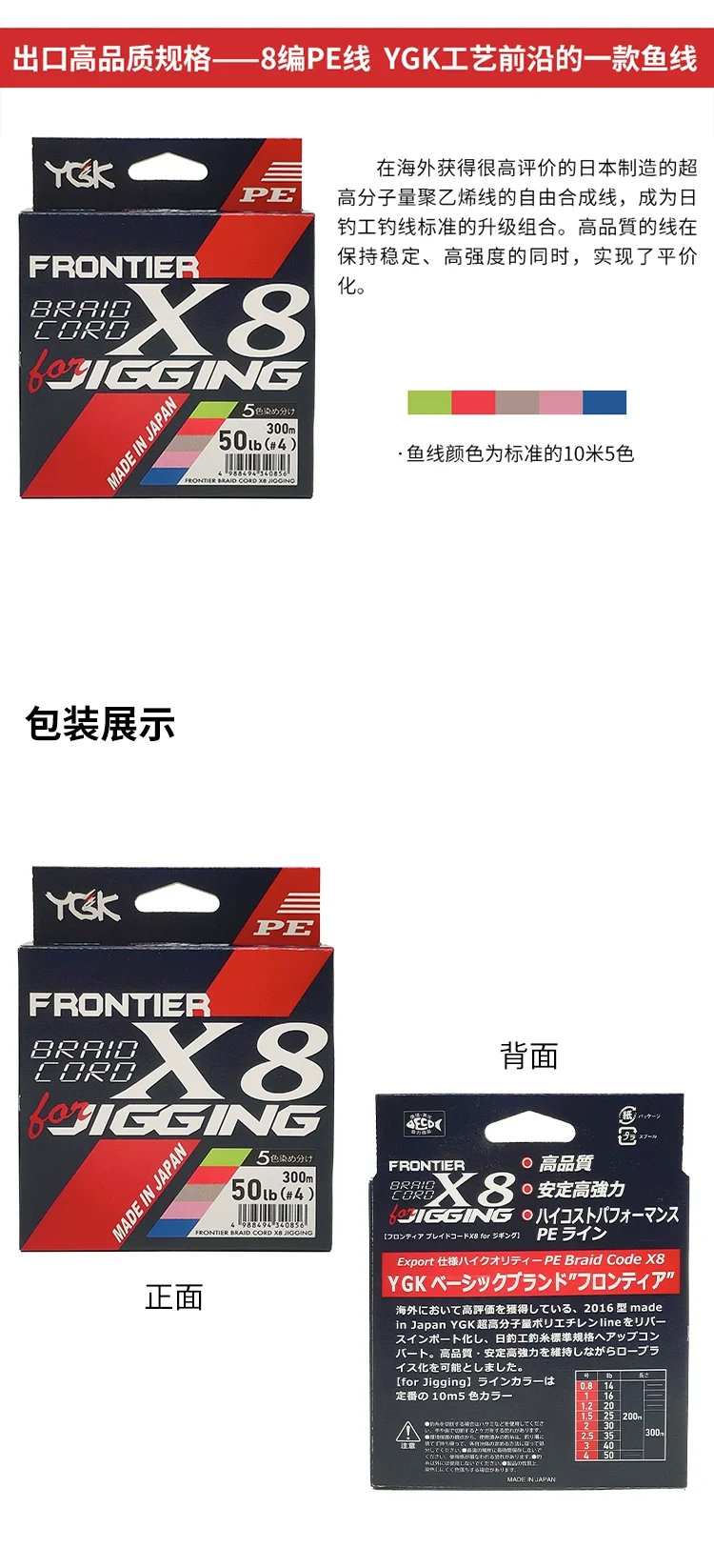 Línea de pesca japonesa original Frontier shore X8 jigging línea trenzada de PE tipo hundimiento líneas de pesca de alta resistencia 200m 300m
