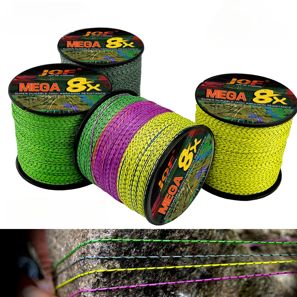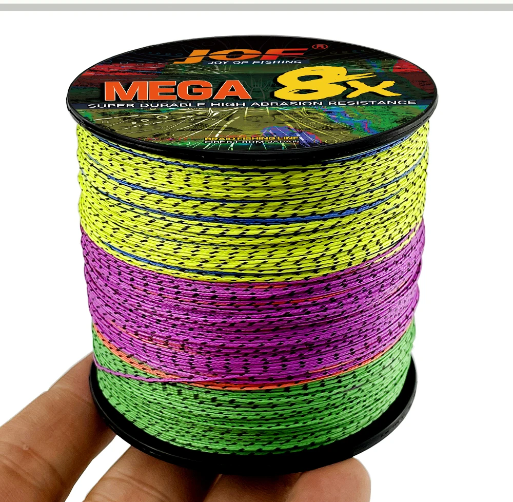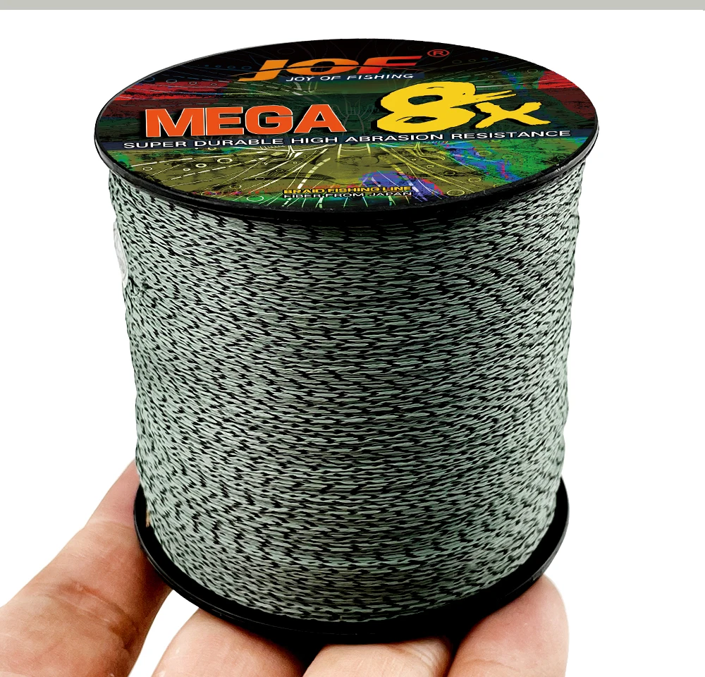 2: Línea de PE X8 Strands, construcción única de trenza moteada, hecha de fibras de PE de ultra alta resistencia.