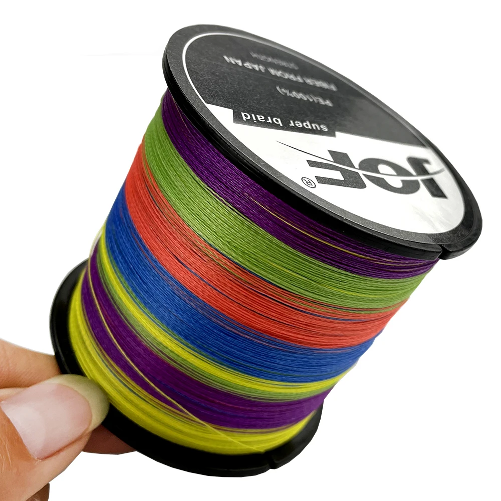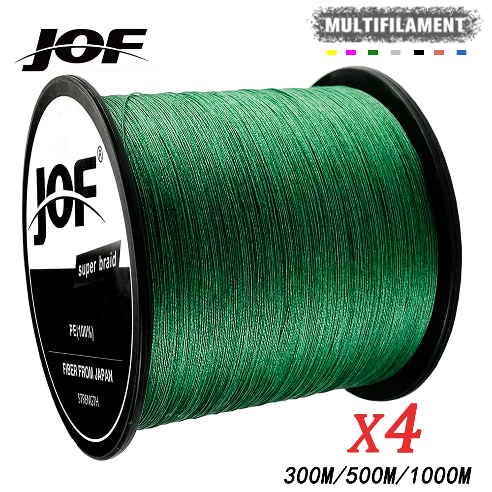 Línea de pesca JOF 4X multifilamento trenzado PE 300M 500M 1000M duradero suave Anti-mordida accesorios de hilo tejido aparejos japonesesDetalles del productoMarca: JOFModelo: Línea de pesca trenzada X4Metros: 300m 500m 1000m (Opcional)Número de línea: 0,4#-8.0#Material: alambre trenzadoFlotabilidad: Línea flotanteAdecuado: agua salada/agua dulce10LB-0,11MM=Número de línea 0,4#12LB-0,13MM=Número de línea 0,6#18LB-0,16MM=Número de línea 1.0#28LB-0,23MM=Número de línea 2.0#35LB-0,28MM=Número de línea 3.0#40LB-0,32MM=Número de línea 4.0#50LB-0,37MM=Número de línea 5.0#60LB-0,40MM=Número de línea 6,0#80LB-0,50MM=Número de línea 8,0#Características1.El hilo de pescar trenzado JOF, el material proviene de Japón, tiene una estructura trenzada única y está hecho de fibra de PE de ultra alta resistencia.