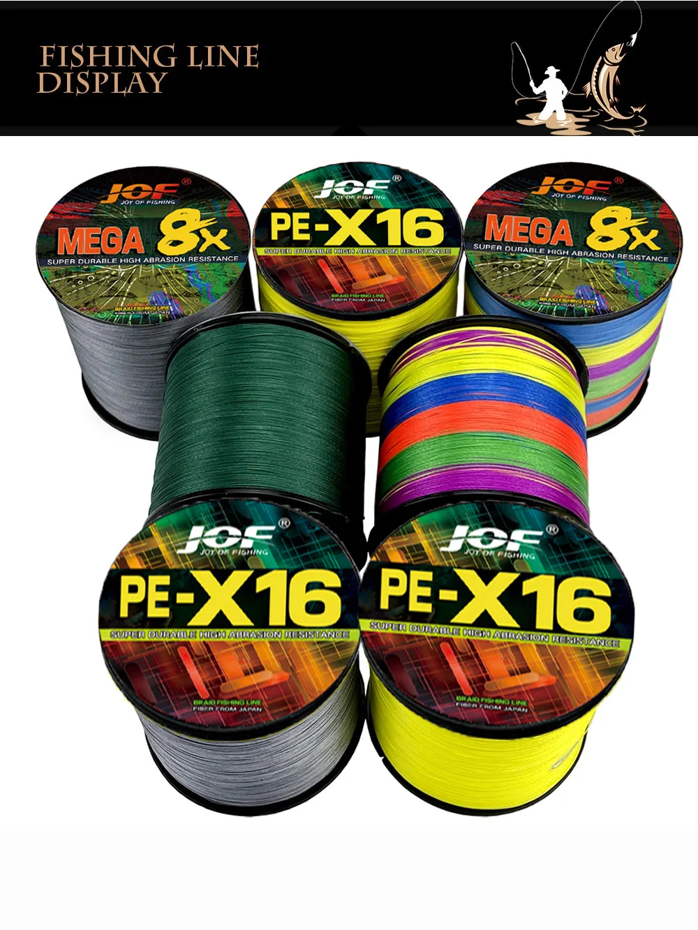 Línea de pesca JOF PE, línea trenzada de 8/9/16 hebras, línea de pesca multifilamento de 18-200LB, súper fuerte para pesca en agua dulce salada, 300M