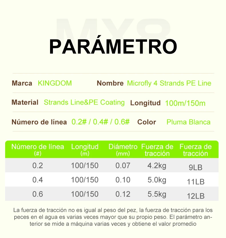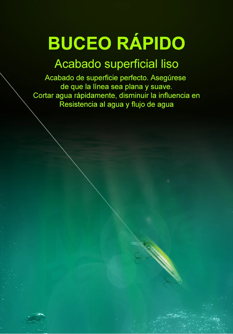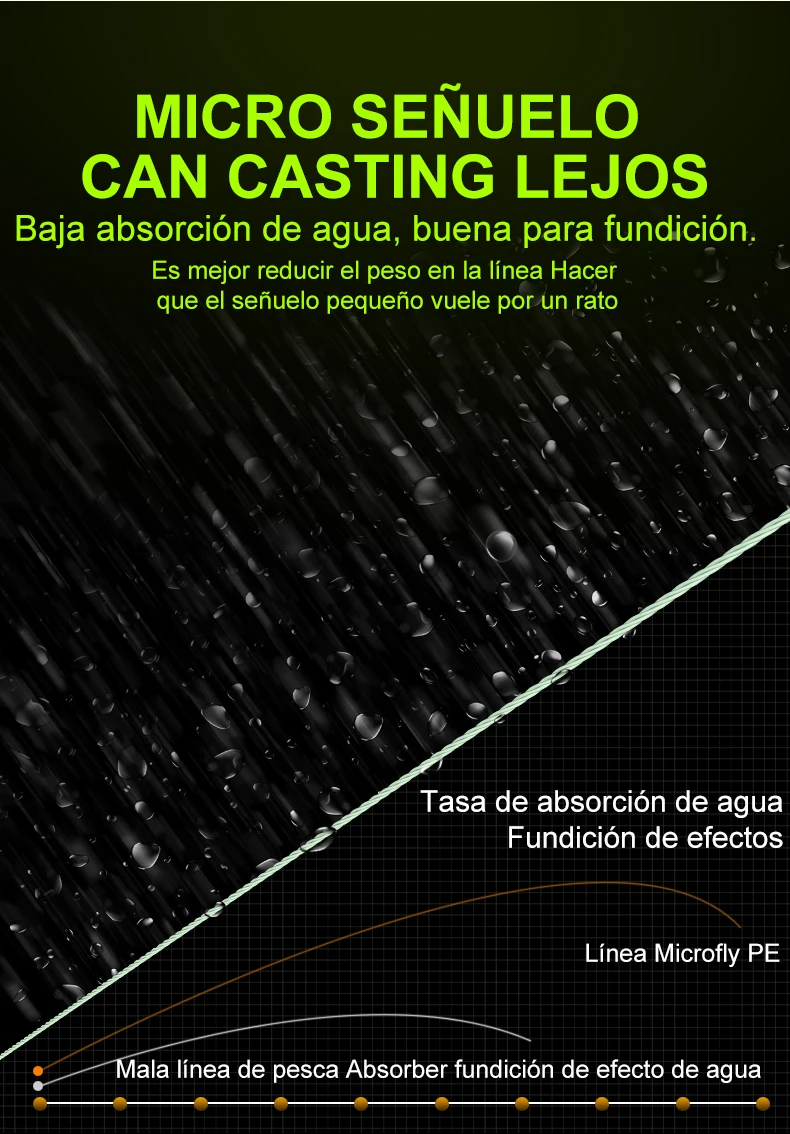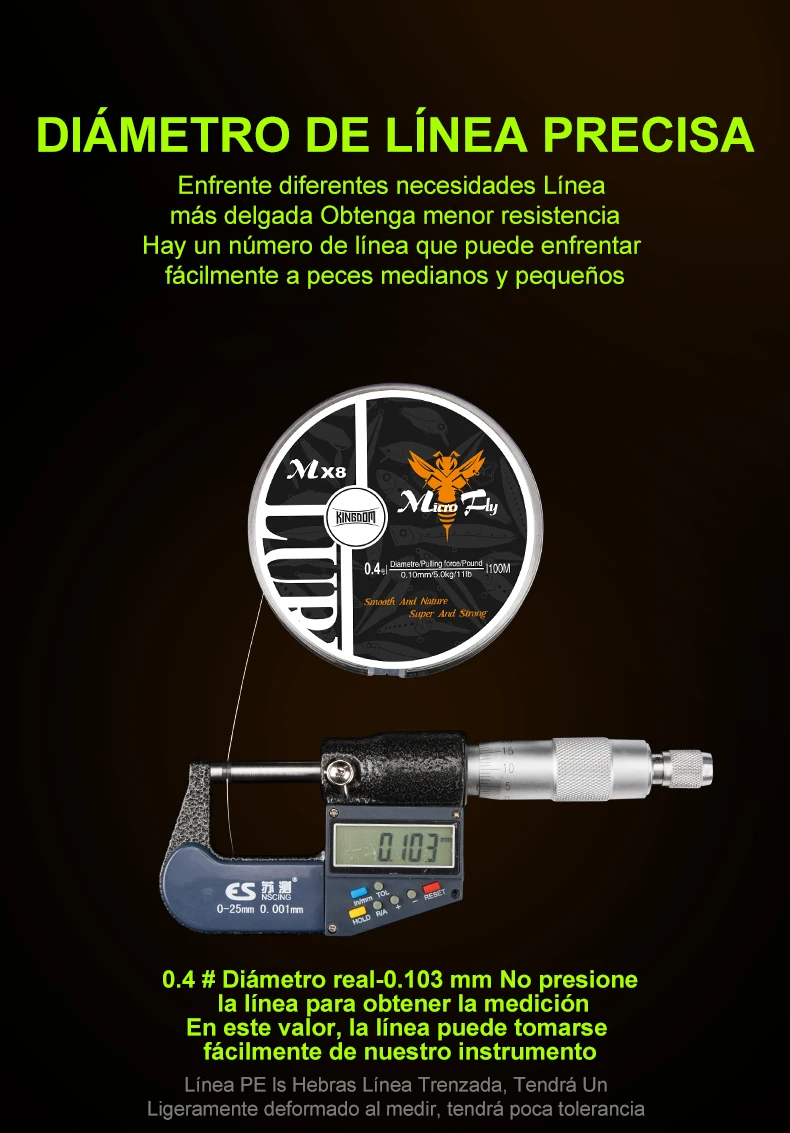 ● Usando 4 hebras de tejido de seda importado súper Delgado, romper la línea tradicional de PE con una limitación de diámetro grande hace que la pesca con micro señuelos sea más interesante.