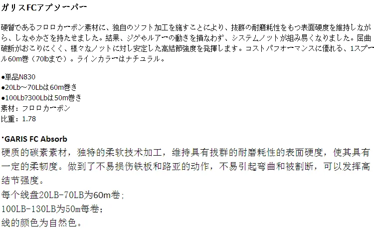 Línea de pesca líder de aguas profundas de fluorocarbono de carbono FC Original japonés de alta calidad GALIS FC 20-130LB para carrete de pesca de atún y lubina