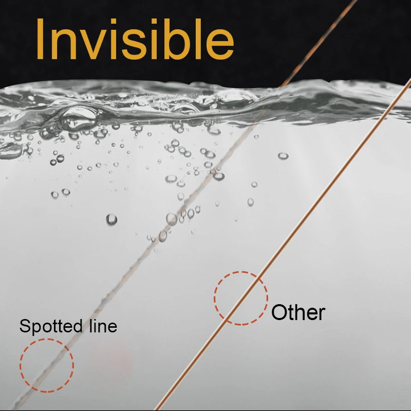 2.Línea de peces manchadas decoloradas: manchas de camuflaje biónico para una pesca más fácil.El color del hilo de pescar varía según el entorno, que es verde en fondo oscuro y marrón en fondo brillante.