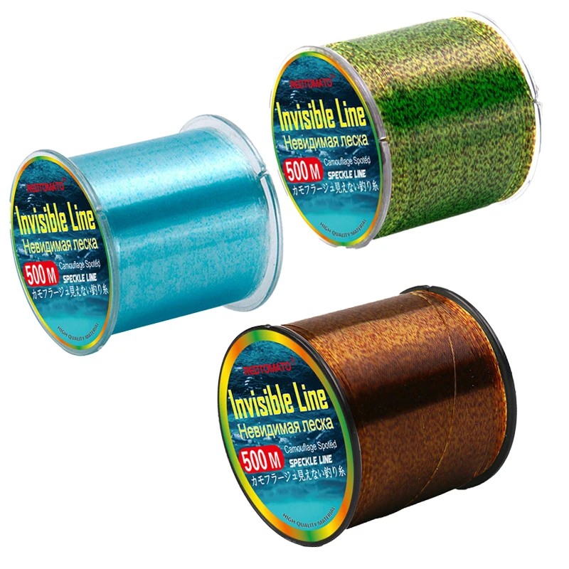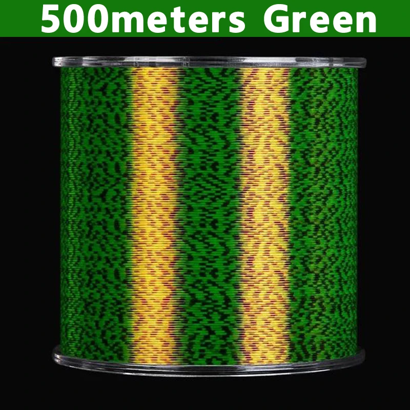 Línea de pesca manchada de 500m, oro/verde/azul, monofilamento Invisible biónico 3D, línea recubierta de fluorocarbono masticable de nailon, artículos de pesca