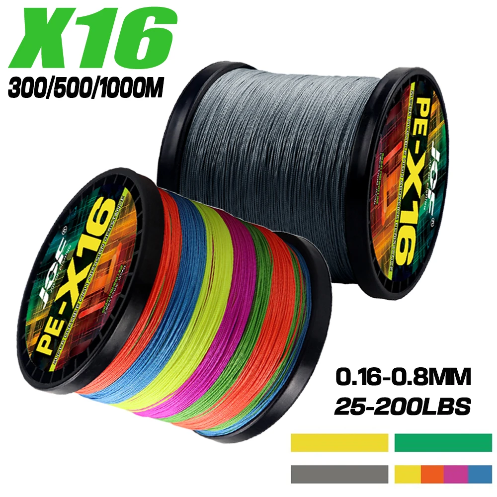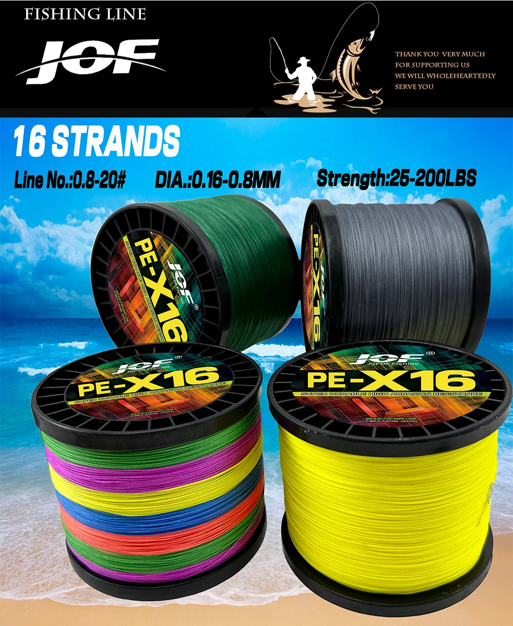 Línea de pesca de mar JOF X16 PE 300-1000M 16 hebras prueba de fuerza de alambre antimordida extremadamente fuerte 11,3 KG-91 KG tejido de agua salada 25-200LB