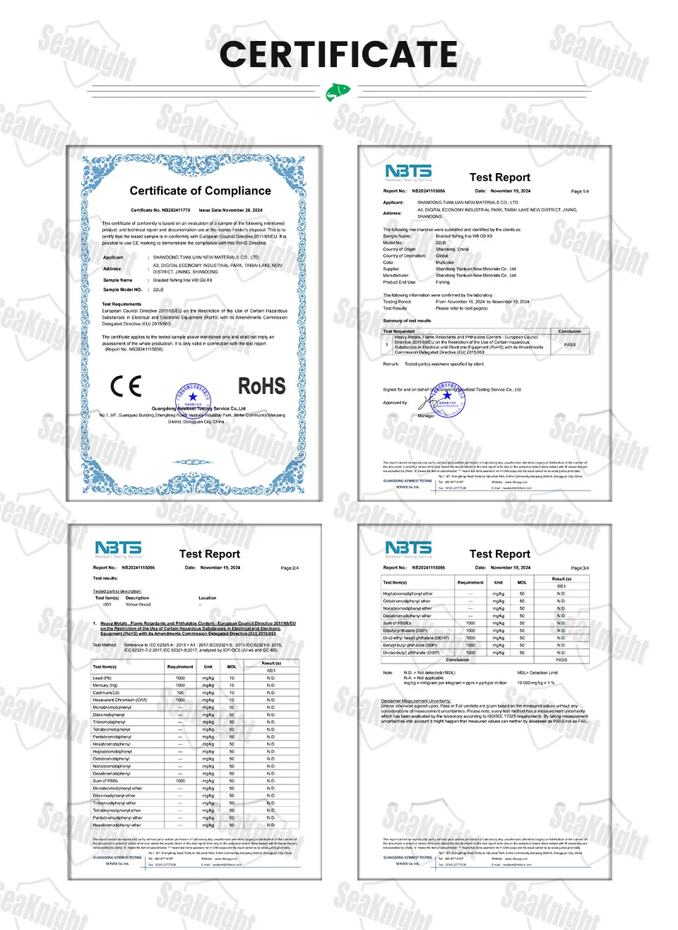 2.9 hebras y revestimiento de dos capas: revestimiento a prueba de rayos ultravioleta + revestimiento a prueba de agua de mar que agrega resina de silicona