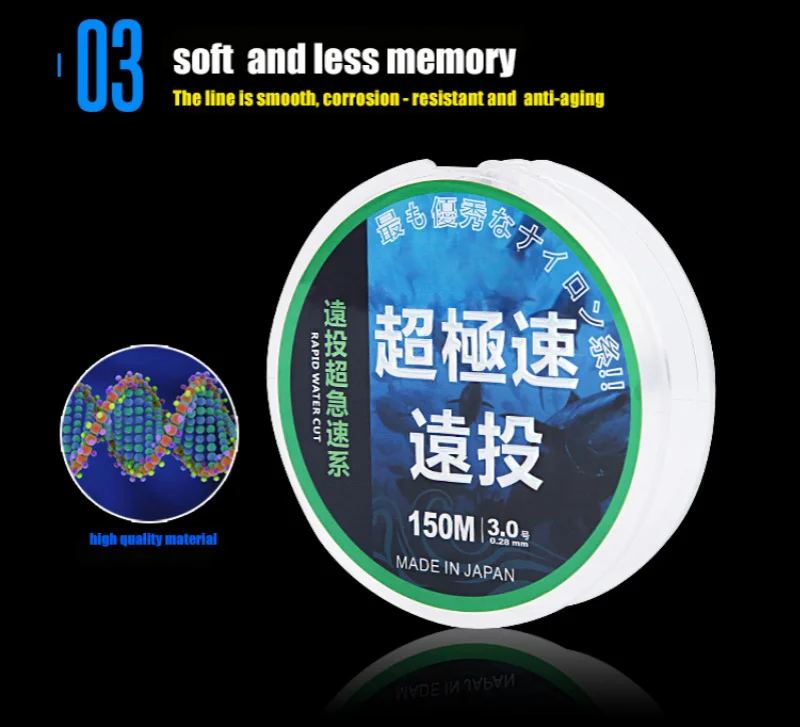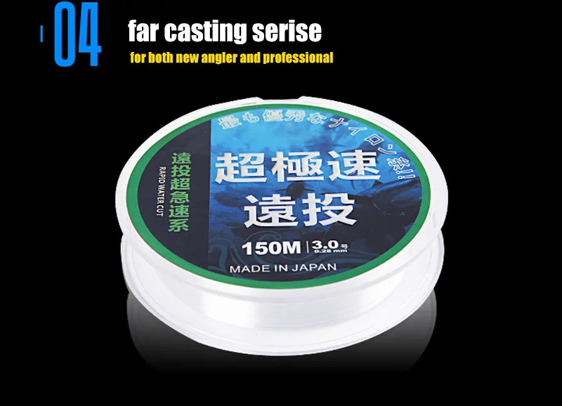 Línea de pesca de monofilamento fabricada en Japón de 150 m