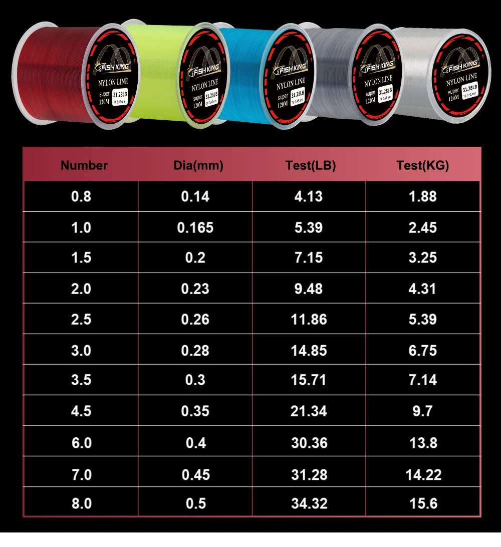 Línea de pesca monofilamento súper fuerte de 120M Japón 0,14-0,60 MM 4,13-34,32LB línea de nailon accesorios de pesca de carpa