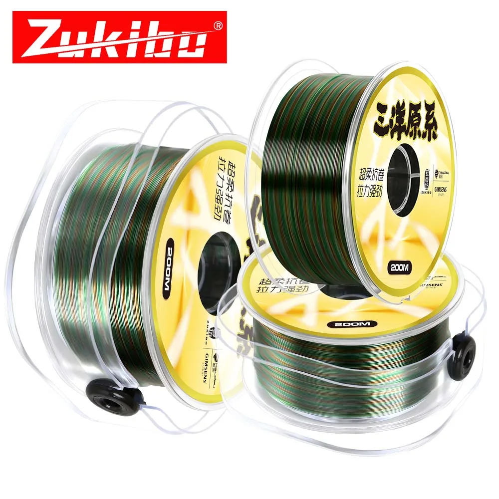 ZUKIBO Sanyo utiliza un proceso de extrusión patentado con resinas de nailon de alta calidad y se enfría durante 48 horas para crear un hilo de pescar de monofilamento premium.