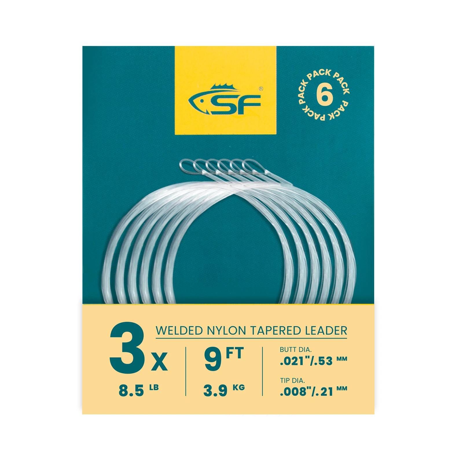 SF 6PCS Línea de pesca con mosca líder cónica de nailon con bucle preatado/bucle soldado 7,5 pies 9 pies 12 pies 0-7X