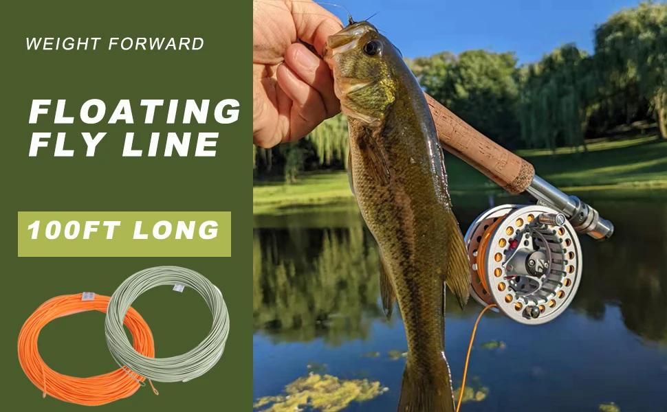 Línea de pesca con mosca, peso hacia adelante, línea flotante, bucle soldado, línea de pescado de 100 pies,
