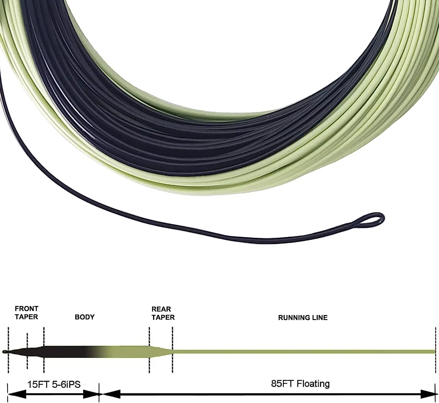 This sinking tip line has a welded loop on the front end for easy rigging.