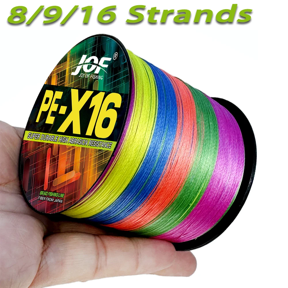 Línea de pesca trenzada JOF X16/X9/X8, 100M, multifilamento, agua salada, PE, alambre de carpa, multicolor, Japón, accesorios súper fuertes, 18-200lb
