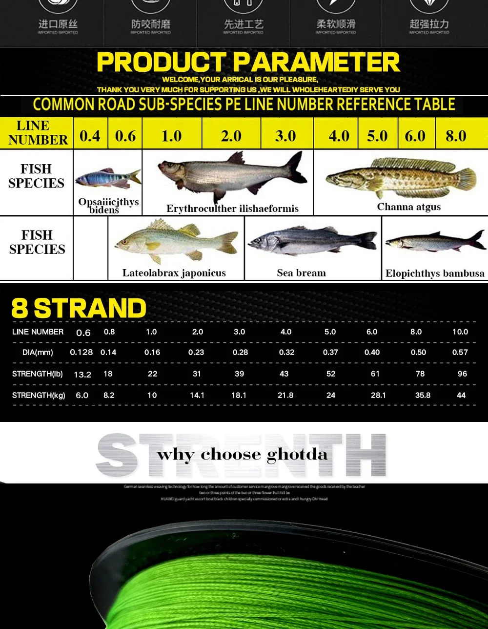(Nota:El número de línea no es el diámetro, consulte la tabla cuidadosamente y déjenos un mensaje si hay algo confundido, ¡gracias!)