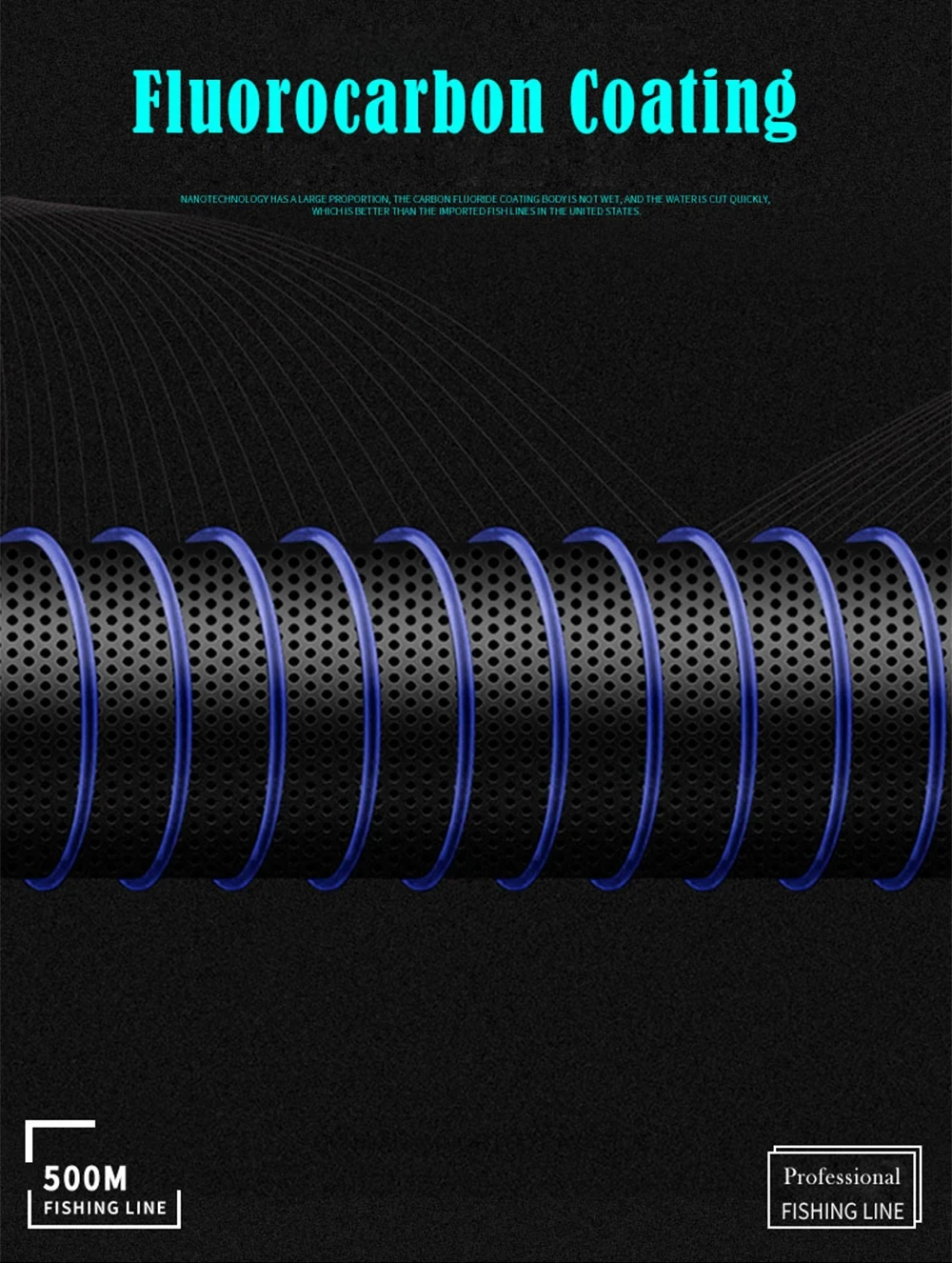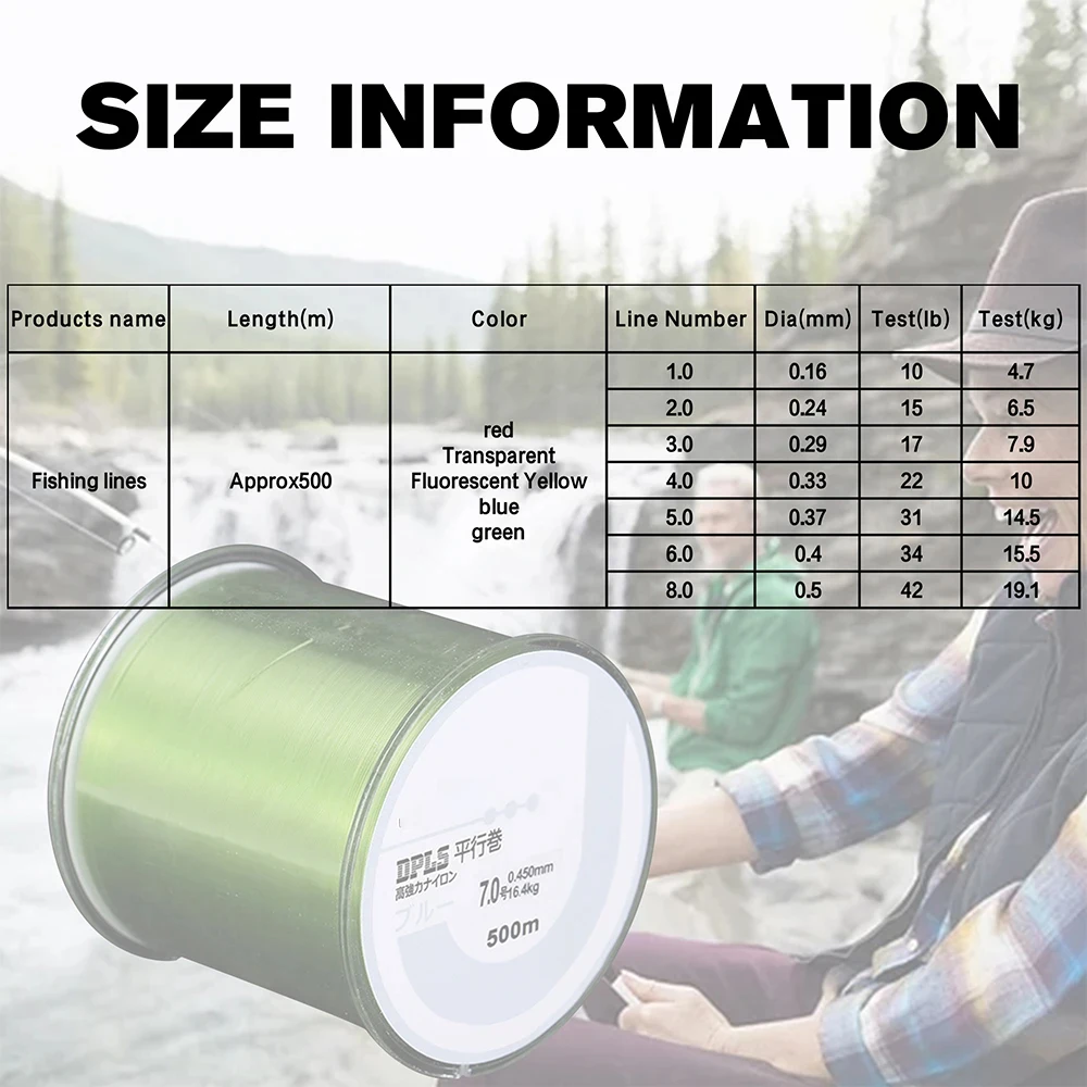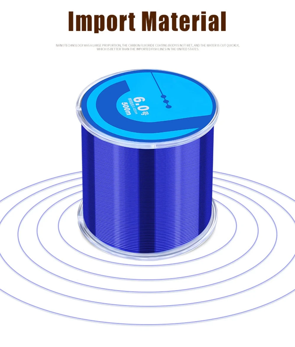 Línea de pesca de nailon de 500m, súper fuerte, 2LB - 40LB, 5 colores, monofilamento japonés, línea principal, accesorios de sedal