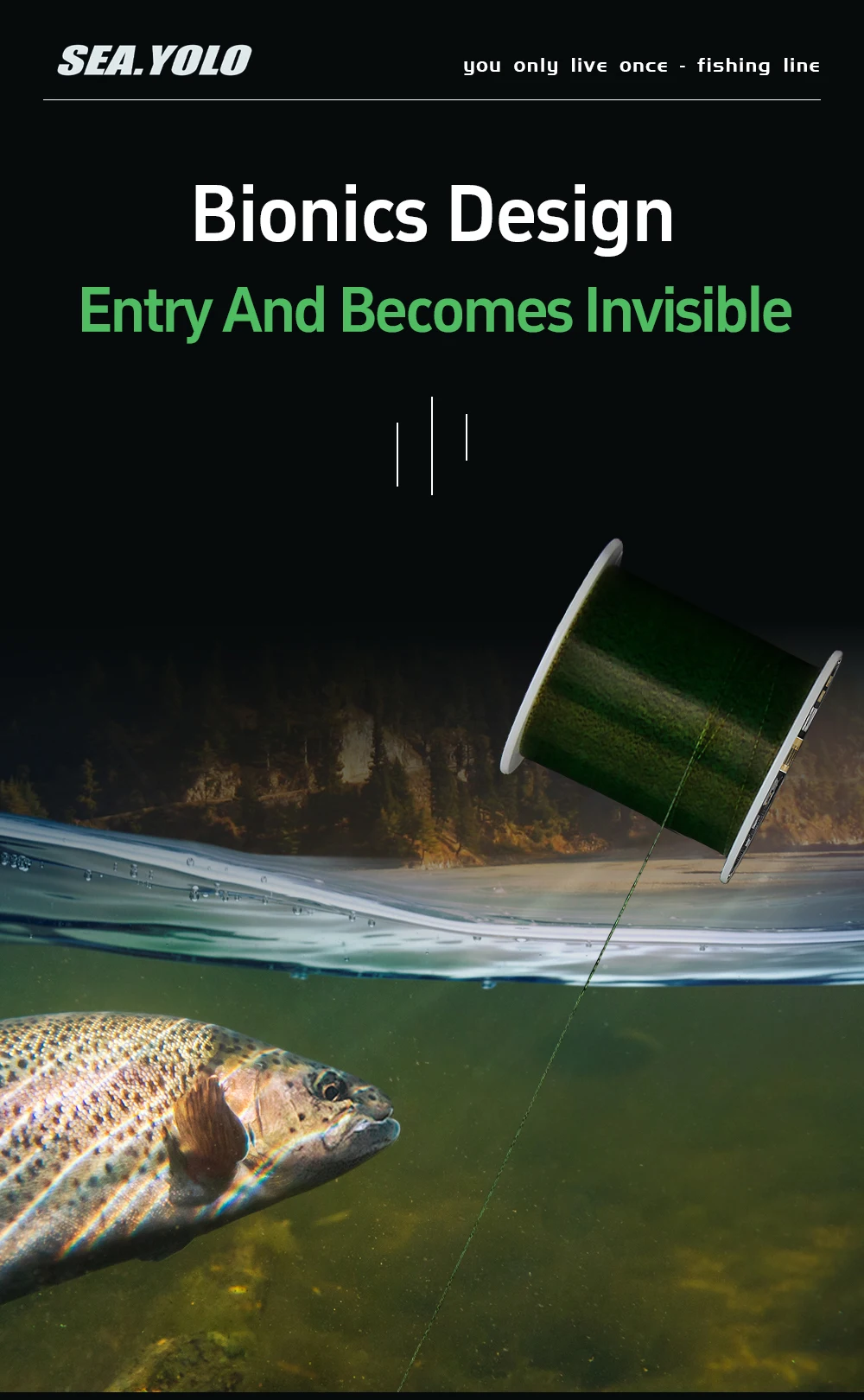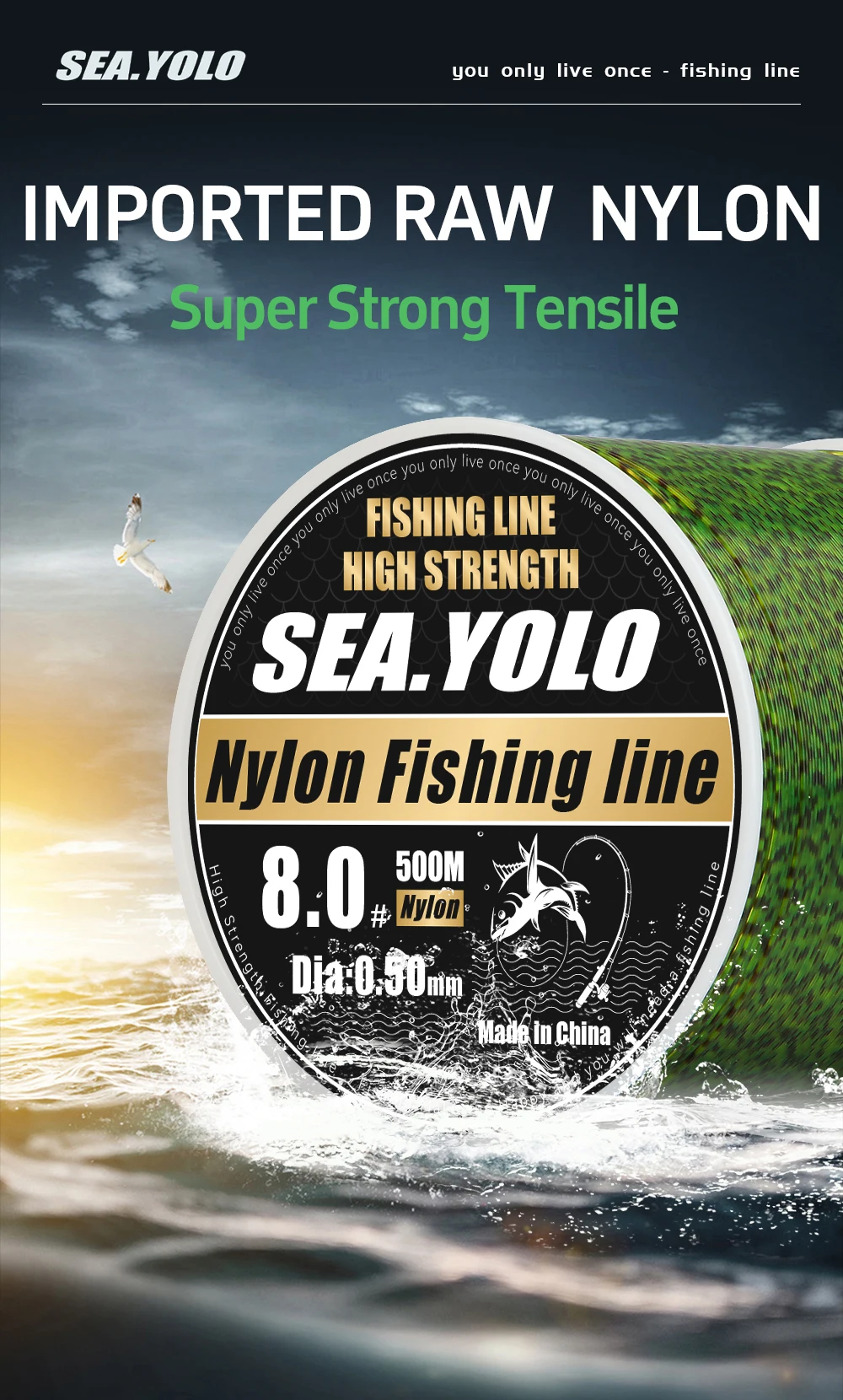 Línea de pesca de nailon Invisible Sea Yolo de 500m, fuerza de tracción súper fuerte, línea manchada de 4,13-34,32LB, accesorios de pesca japoneses