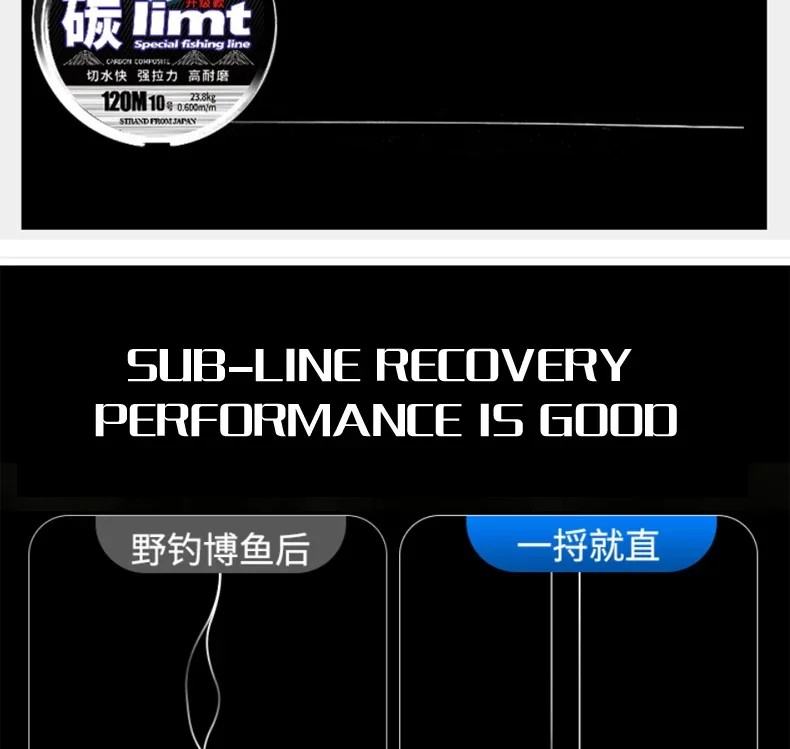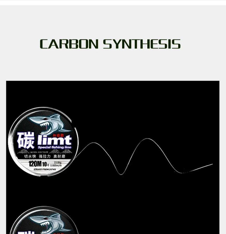 Línea de pesca de nailon sintético de carbono de 120M, línea de monofilamento anticorrosión de 0,100mm-0,600mm, herramienta de pesca, línea de pesca de fluorocarbono