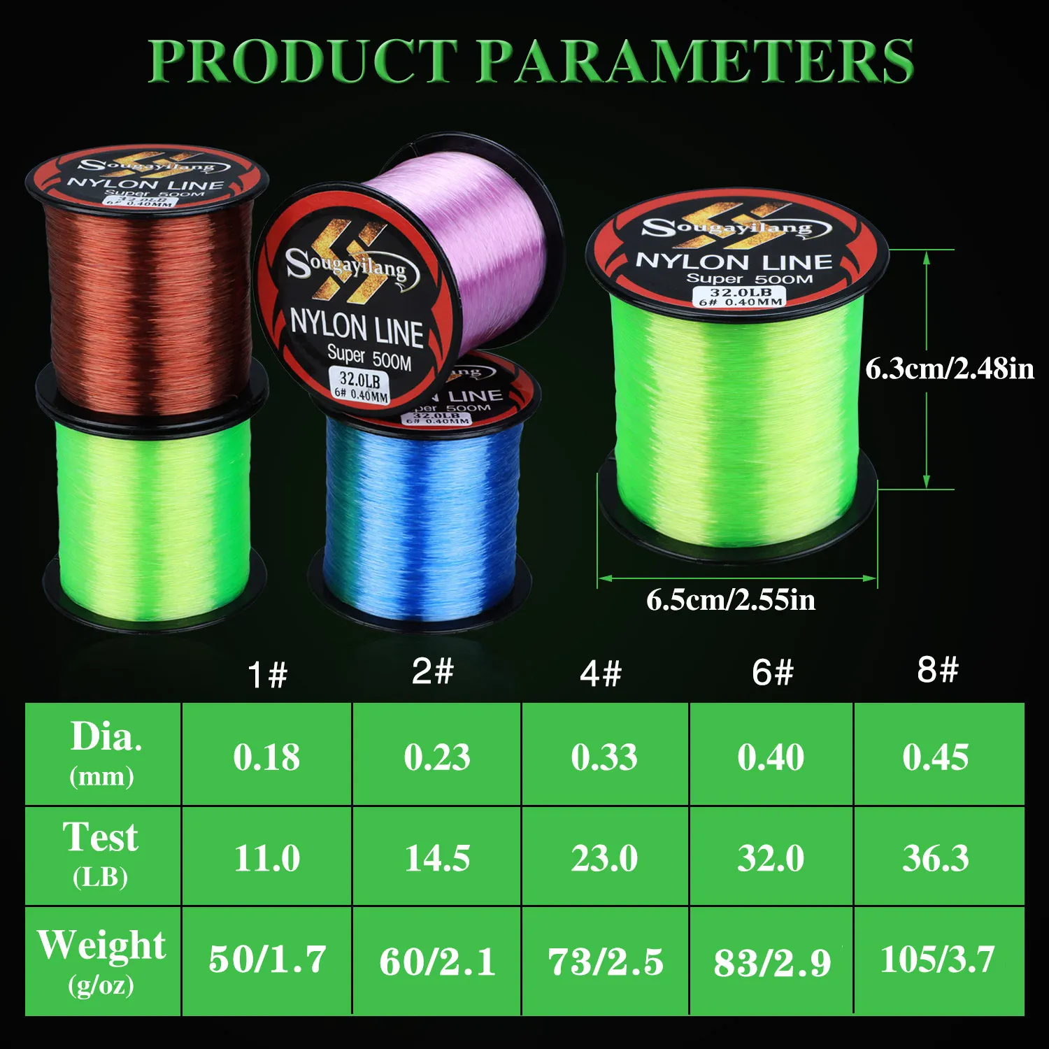 Línea de pesca de nailon Sougayilang de 500m, línea principal monofilamento duradero, línea de pesca de mar de roca súper fuerte, carrete a granel