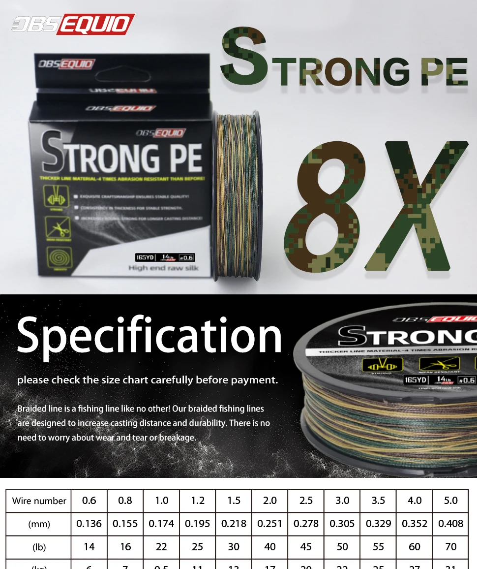Línea de pesca OBSEQUIO PE, línea trenzada de PE de 8 hebras, alambre de pesca multifilamento de 150M/200M, herramienta de sedal de pesca de carpa, camuflaje verde
