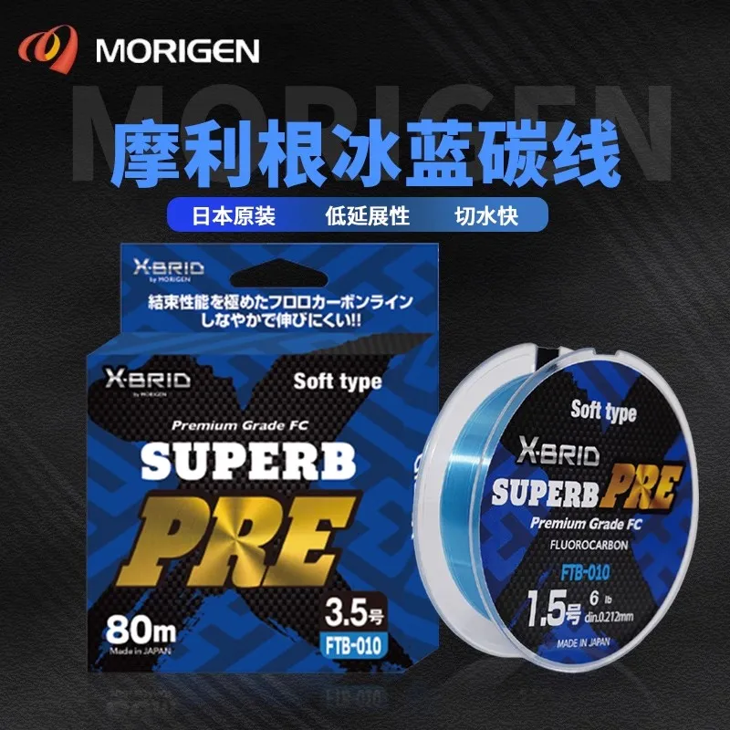 Línea de pesca Original MORIGEN X-BRID 100% FLUOROCARBON 80m 4LB 6LB 7LB 8LB 14LB 20LB línea de pesca de tipo súper suave hecha en Japón
