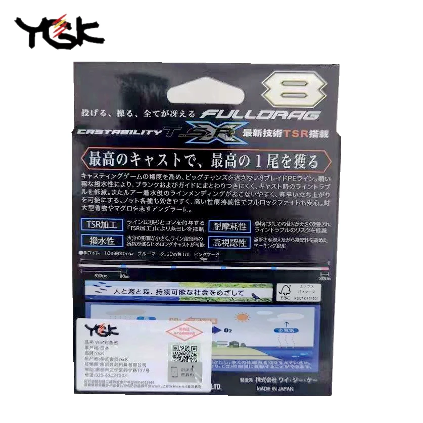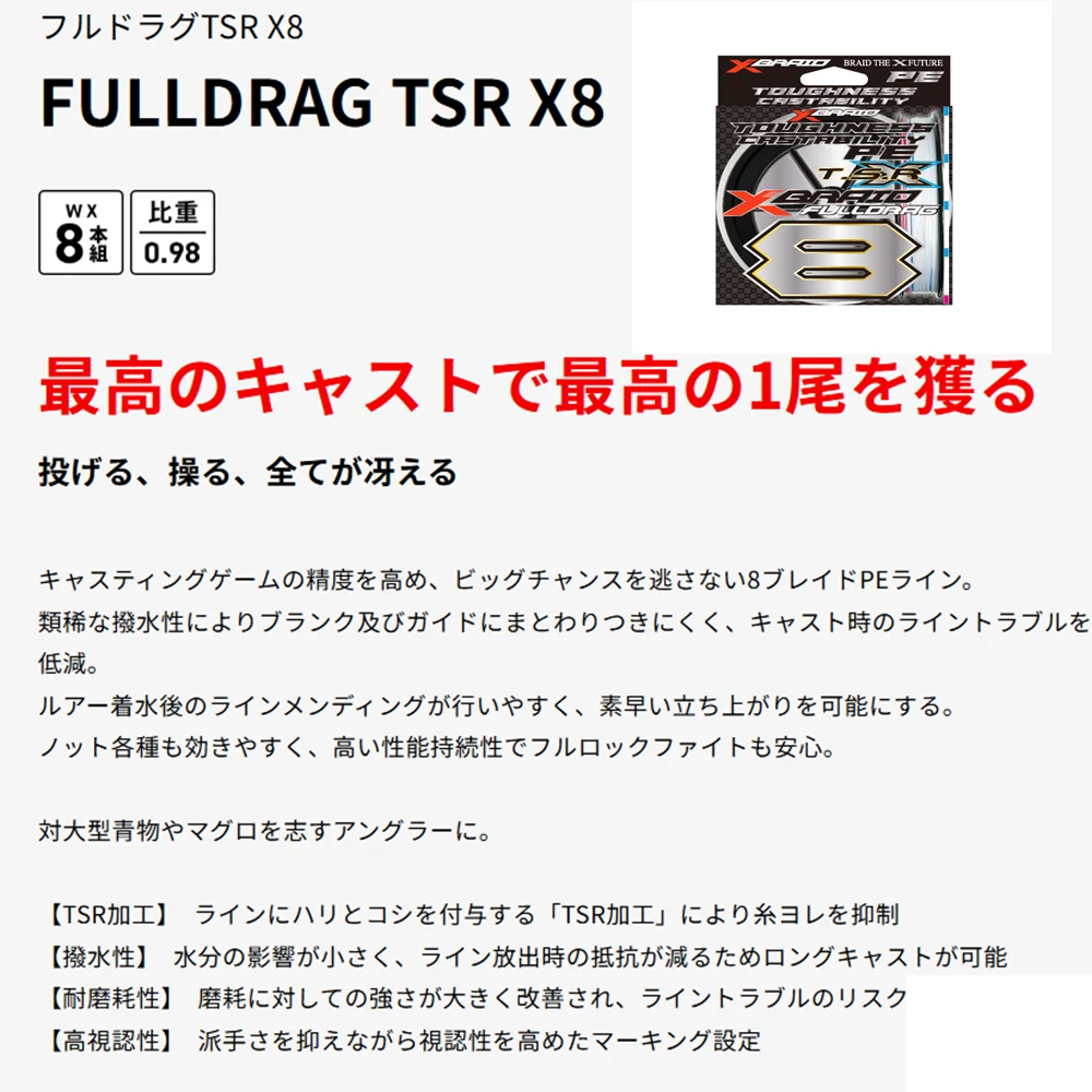 Línea de pesca Original YGK X-BRAID FULLDRAG TSR X8, 100m/300m/1200m, línea de PE 60LB/70LB/90LB/100LB/180LB, línea de pesca de mar japonesa