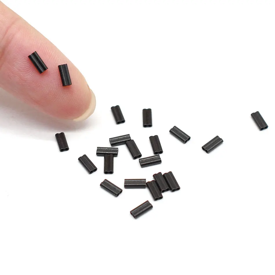 Material: cobreColor: NegroForma: OvaleDiámetro interior: 0,5 mm, 0,6 mm 0,7 mmPaquete: bolsaTubo de alambre de pesca de 20 piezas