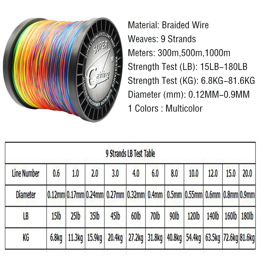 Hilo de pescar PE de 9 hebras, 300M, 500M, 1000M, multifilamento Multicolor, alambre trenzado, herramienta de línea de pesca de carpa