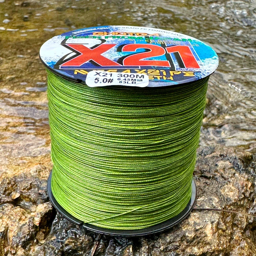 Línea de pesca de PE multifilamento súper fuerte X21 hebras, alambre de PE trenzado hueco de 300m, 27-212LB para aparejos de pesca de lubina de carpa