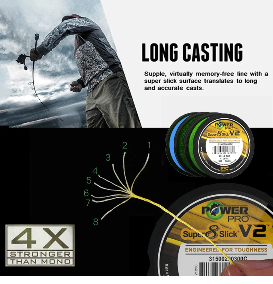 Línea de pesca POWER PRO SSV2 275M PE, línea de pesca Spectra de 8 hebras, línea trenzada de pesca Original de EE. UU., PESCA