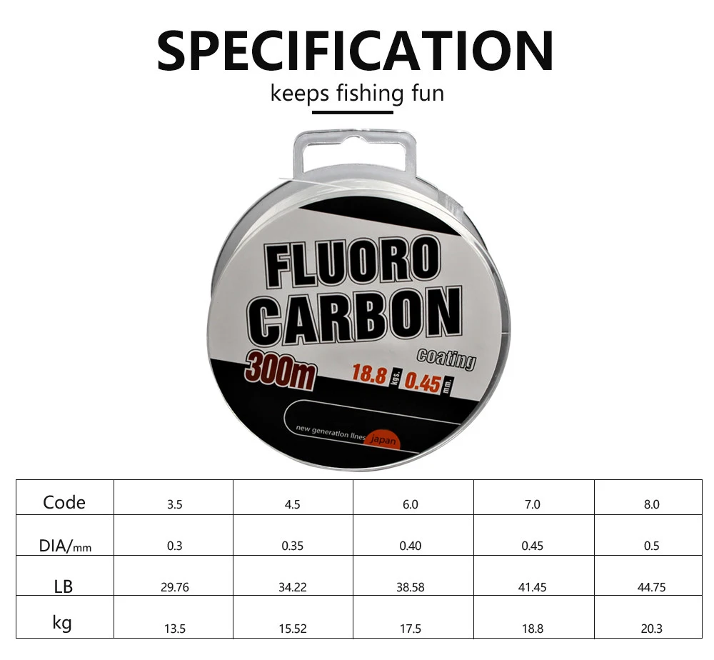 Línea de pesca con revestimiento de fibra de carbono de 300M, 0,3-0,5 MM, 30-45LB, cuerda de pesca con mosca de fluorocarbono, líder de choque, Japón